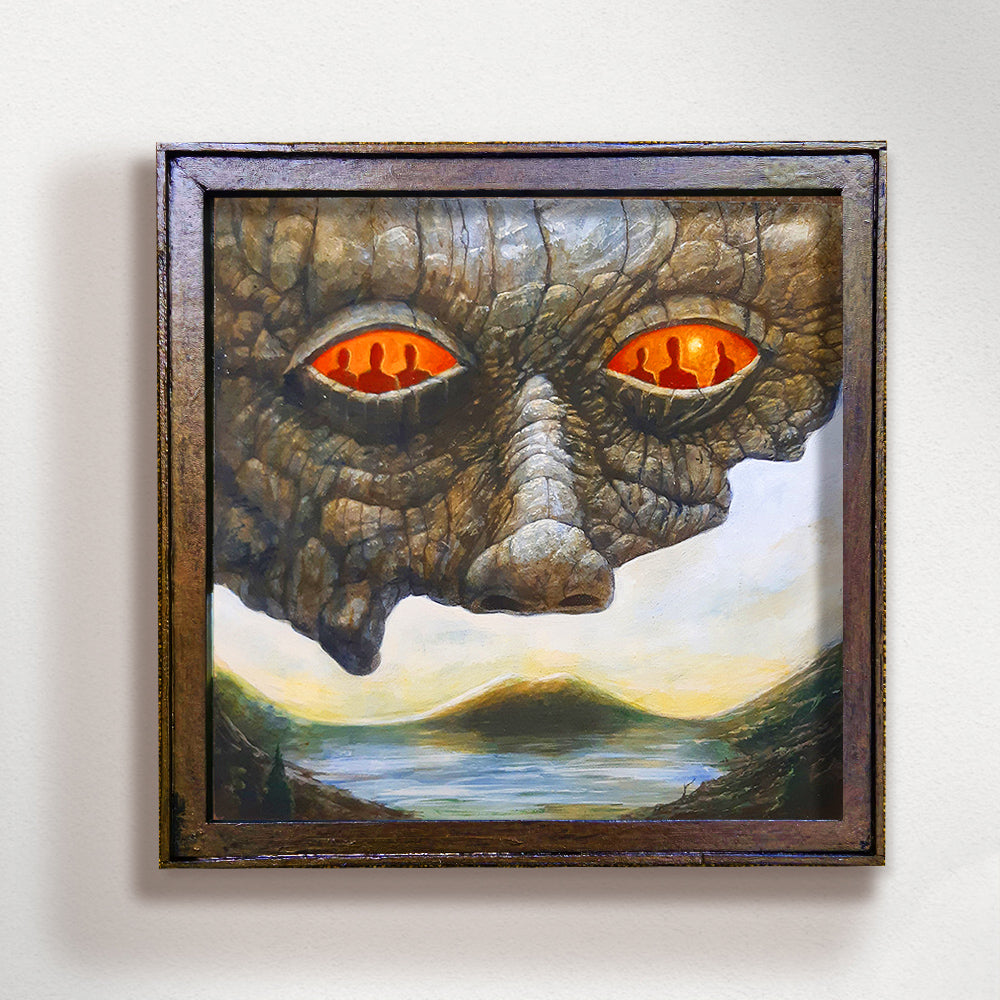 Inspired by visions from a fever dream in 2019. It's amazing how a dream experience can bring the dreamer to the edge of a complex and traumatizing experience before returning them to the safety of their bed. Such was the experience that inspired this piece. Alone on a tiny barren island I was filled with dread, knowing that the inhabitants might return at any moment and would not be happy to find me on their tiny piece of land. I scanned the horizon looking for a way out of my predicament; then they returned.